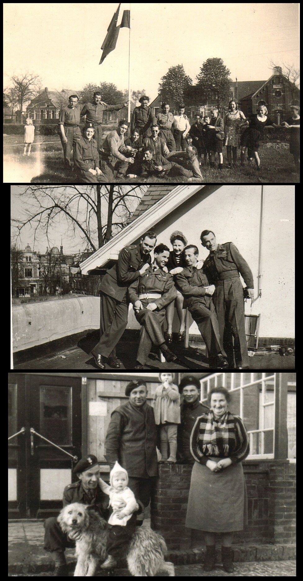 My father isn't in the top photo, but he's on the right of the middle one and in the foreground of the bottom one (with the dog and child). That bottom picture is one the very few that has an inscription on the back - it reads "Rosmalen, Holland, 1945".