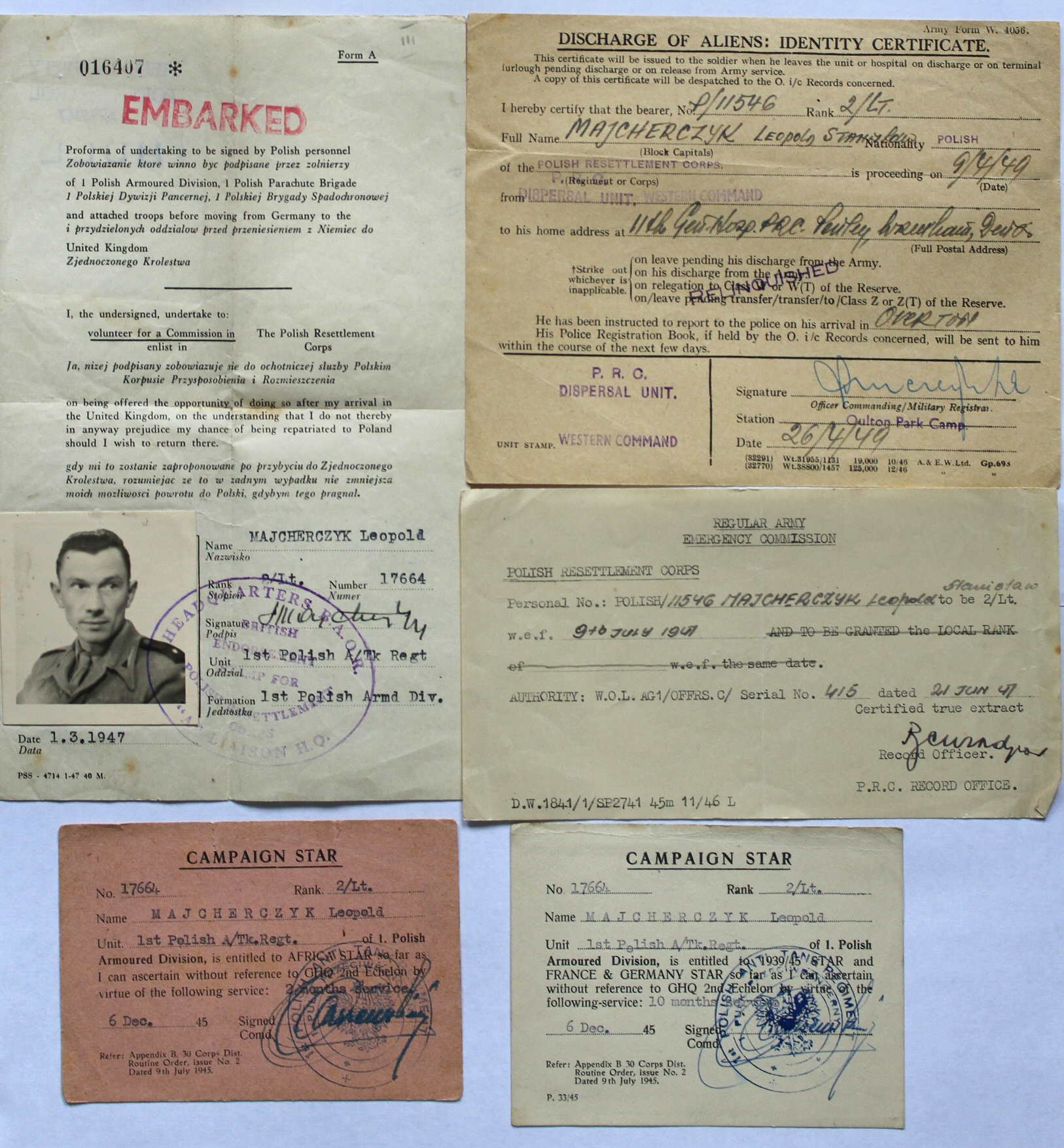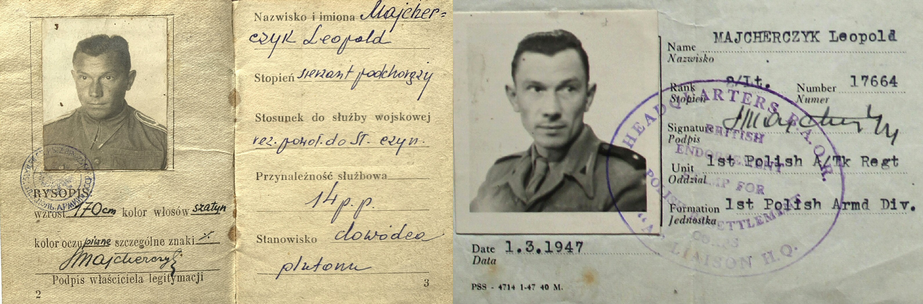 (1) My father was born Leopold Majcherczyk in November 1915 (he abbreviated his surname to May before I was born). At some point in his early 20s he entered the Polish Army - I think there's just one photo from this period that shows him in uniform.